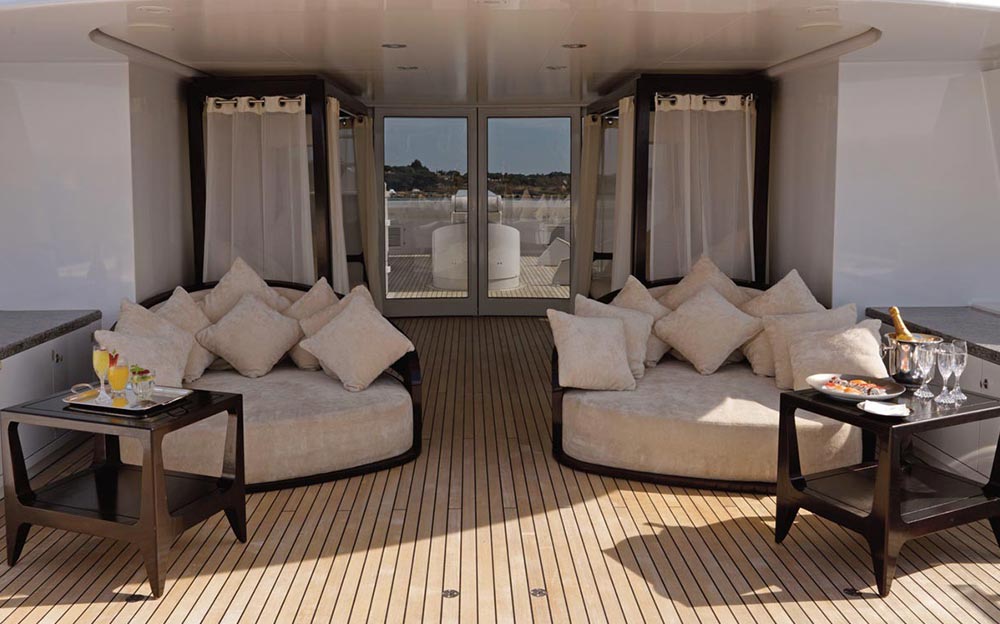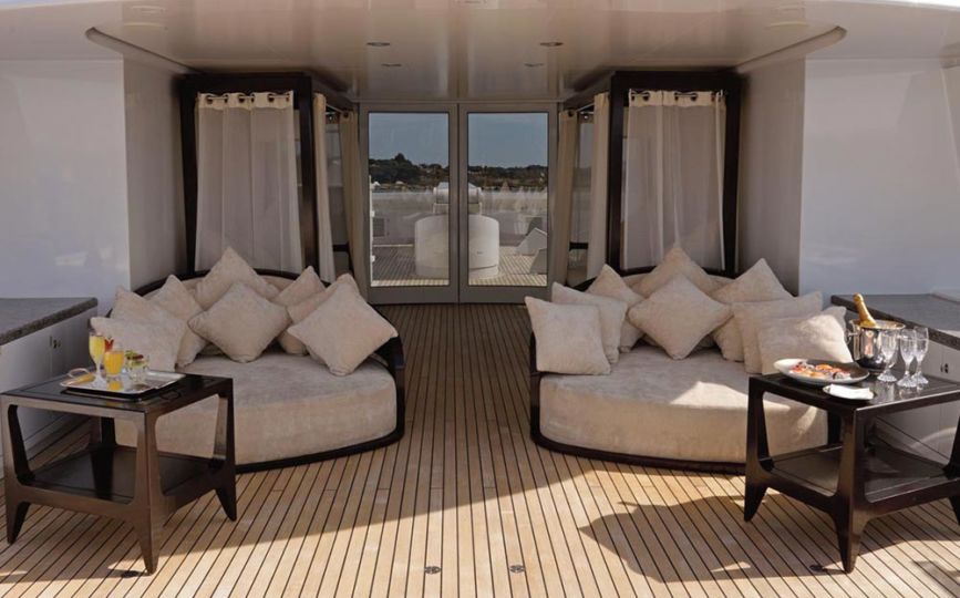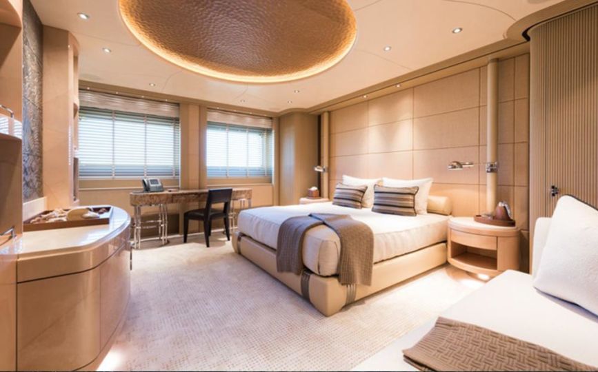 Reymond Langton Design est responsable de son magnifique design de l’extérieur et de l’intérieur. L’intérieur est très chic et luxueux. Découvrez la Côte d’Azur à bord de cette beauté!