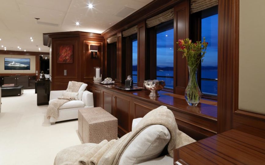 Ce yacht a un style intemporel avec de beaux meubles et de somptueux sièges offrant une atmosphère élégante et confortable.