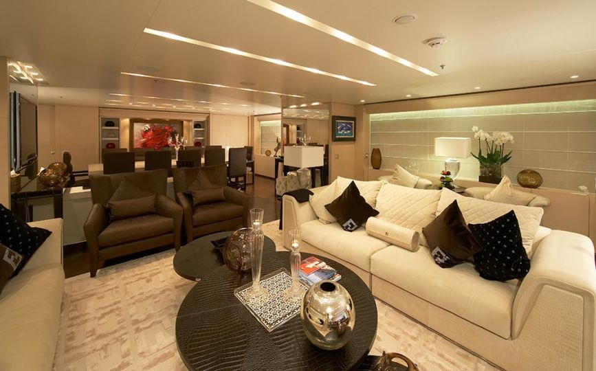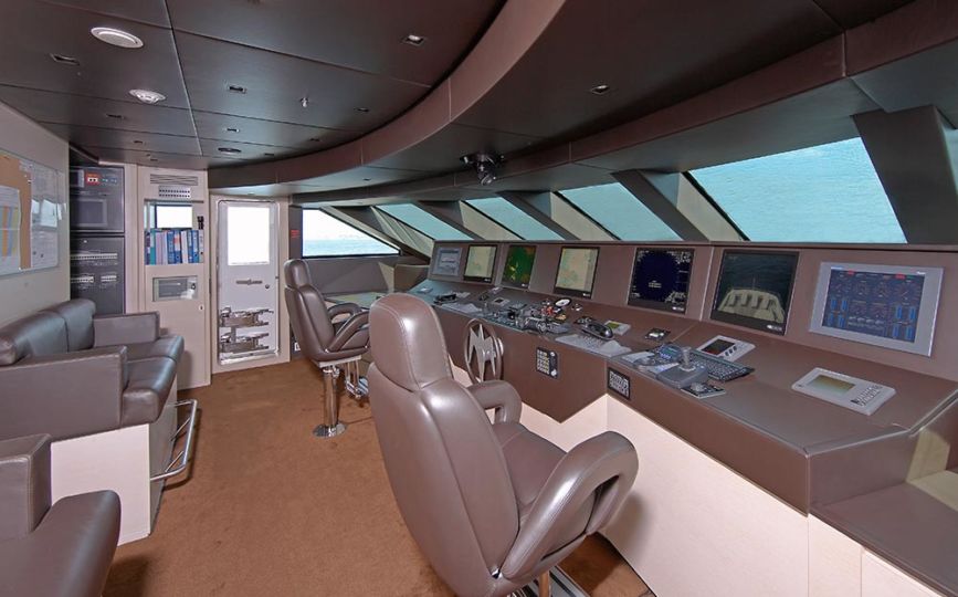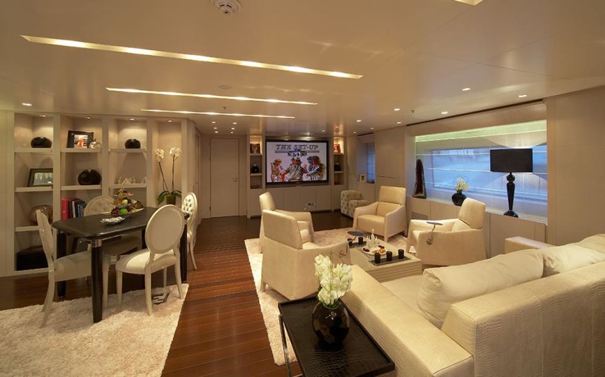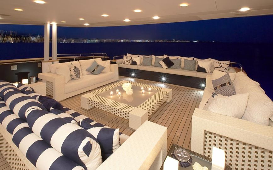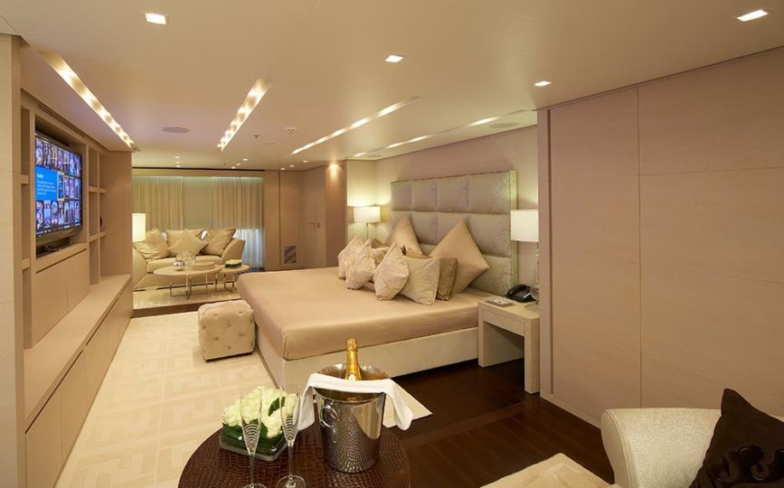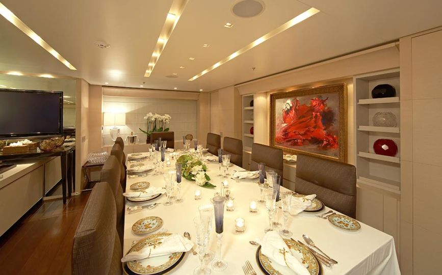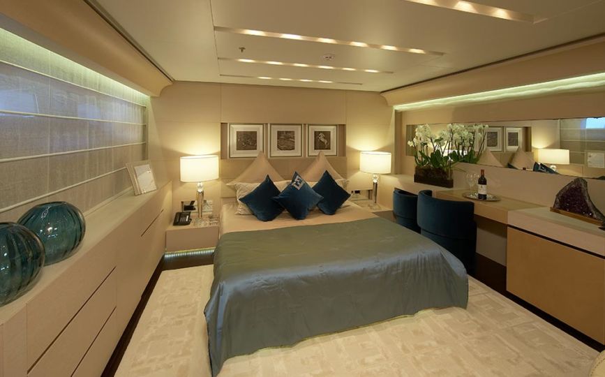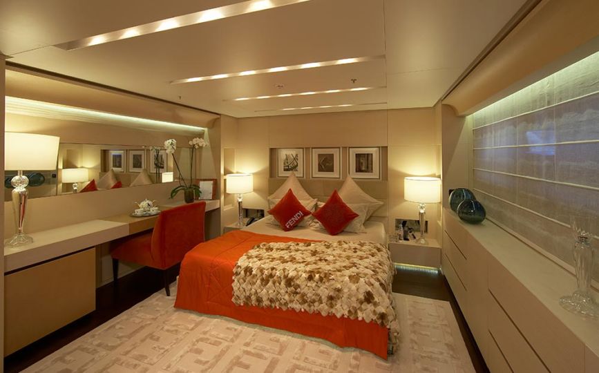 Vous trouverez à bord un style intemporel avec de beaux meubles et de somptueux sièges offrant une atmosphère élégante et confortable. Vous trouverez également à bord des équipements tels que la climatisation, une connexion Internet, un jacuzzi sur le pont, une sale de sport, un ascenseur, des stabilisateurs en cours et à l’ancre.