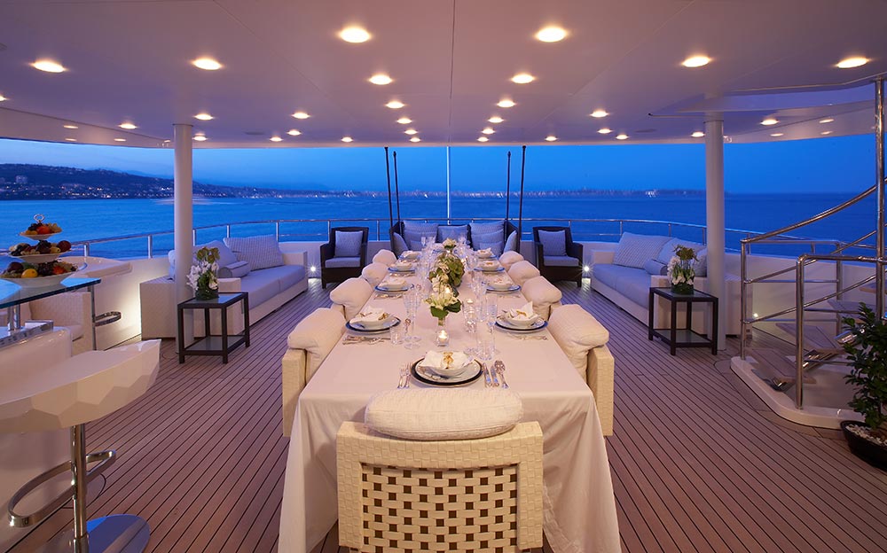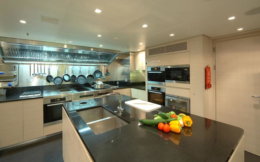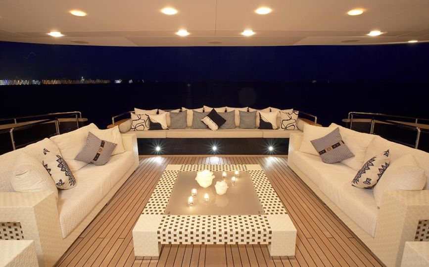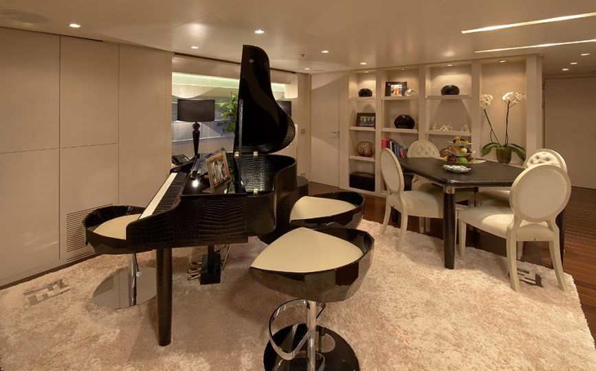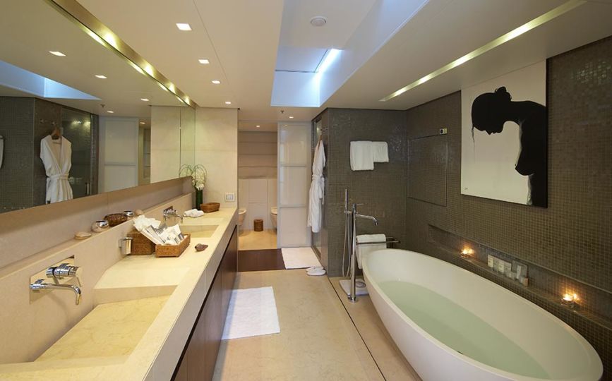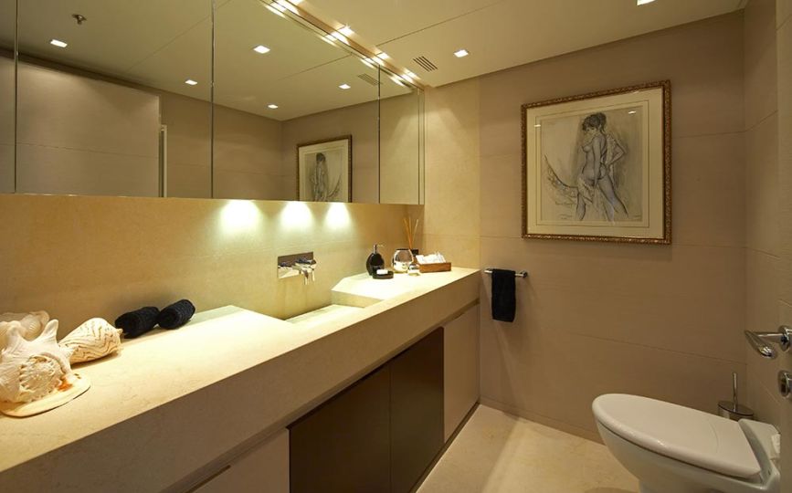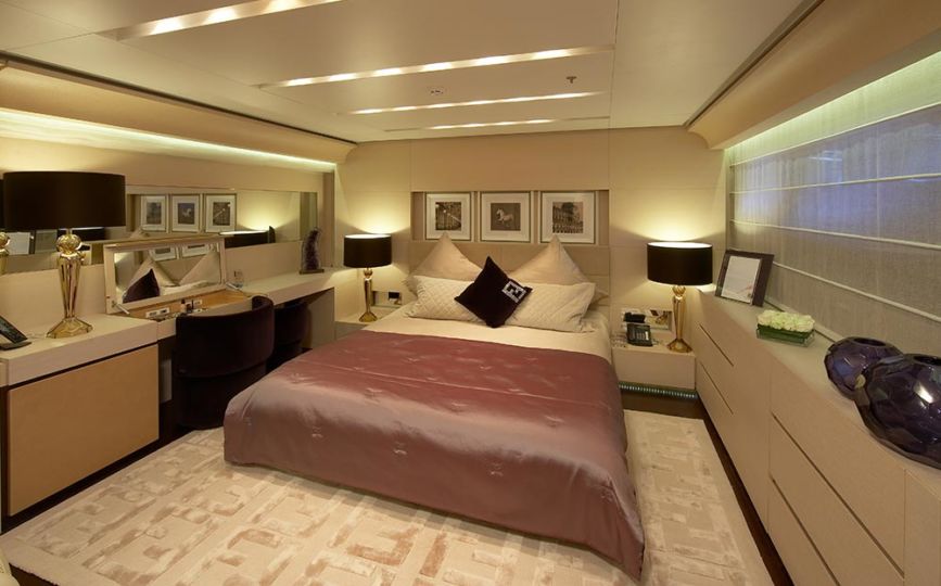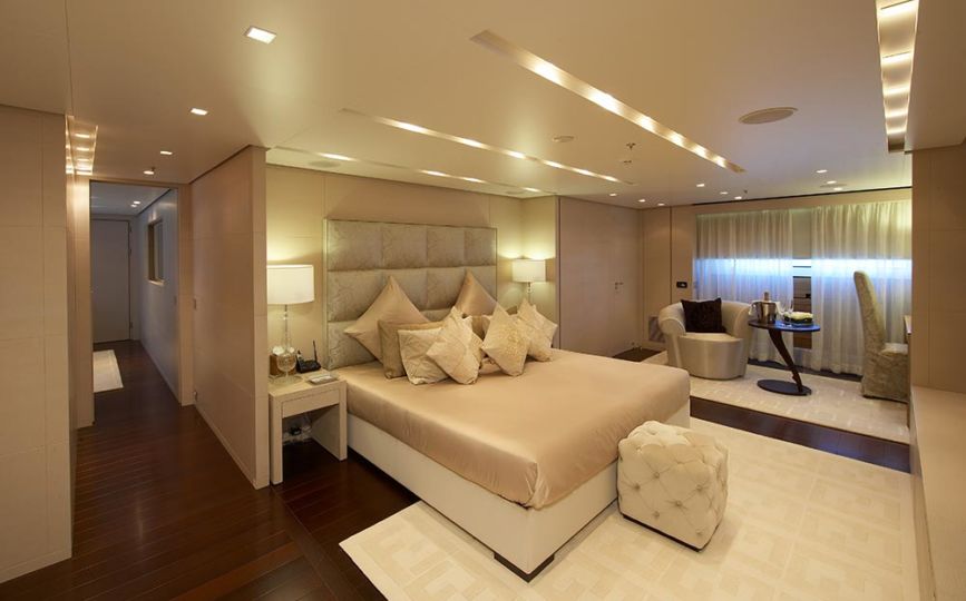 Vous trouverez à bord un style intemporel avec de beaux meubles et de somptueux sièges offrant une atmosphère élégante et confortable. Vous trouverez également à bord des équipements tels que la climatisation, une connexion Internet, un jacuzzi sur le pont, une sale de sport, un ascenseur, des stabilisateurs en cours et à l’ancre.