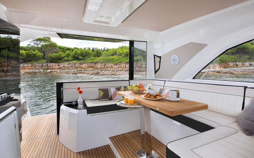 Ce yacht a un design intérieur très luxueux. Il vous séduira par son esprit contemporain et soigneusement étudié dans les moindres détails. Parfait pour une location d’une journée, il peut accueillir 12 passagers à bord en plus d’un capitaine professionnel. Vous pouvez également louer ce bateau pour une semaine et profiter de la superbe cabine centrale avec un lit king-size. La deuxième cabine des invités offre les mêmes détails luxueux et le confort général. À bord, vous trouverez une petite cuisine, une machine à café et tout l’équipement nécessaire pour une location parfaite.