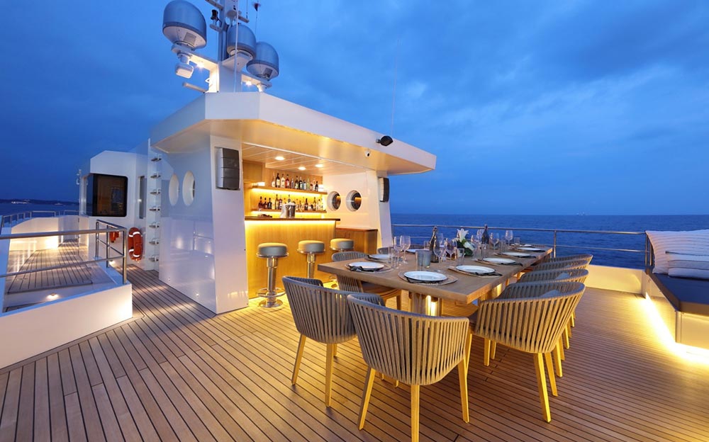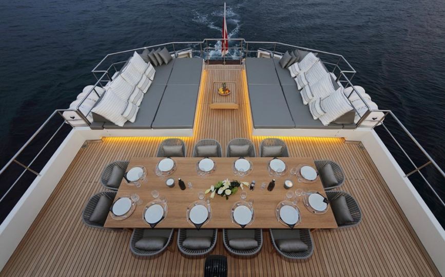 Tansu is responsible for her beautiful exterior and interior design. Timeless styling, beautiful furnishings and sumptuous seating feature throughout to create an elegant and comfortable atmosphere. All the interior is very bright and the outside lines makes this yacht visible from far away.