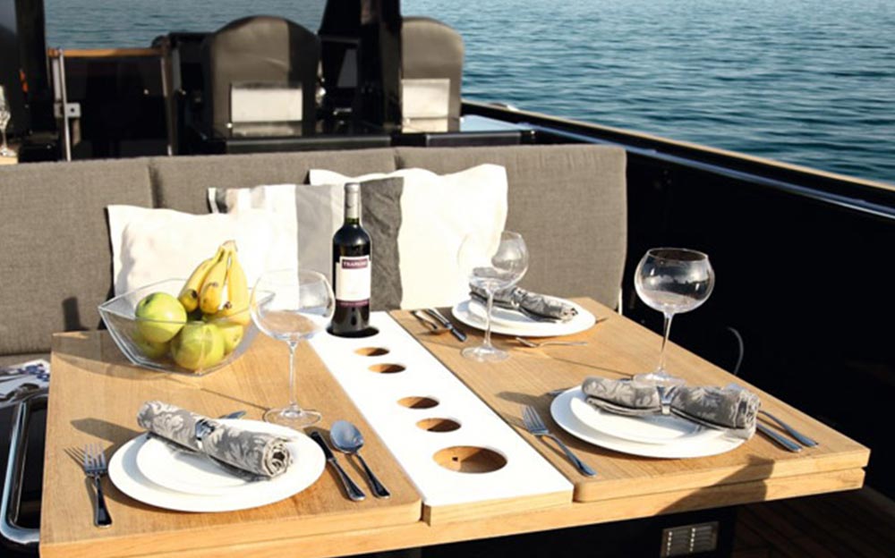 Этот скоростной катер может принять 12 гостей на борту. Снаружи, Фьорд имеет обширную палубу с большим столом, превращающимся в большую зону для загара, и внешнюю кухню. Включите свою музыку благодаря звуковой системе на борту. Наслаждайтесь незабываемым моментом в море!