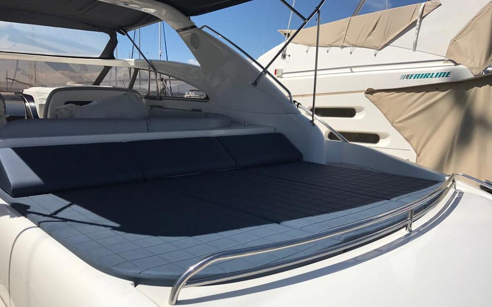 Наслаждайтесь солнечными ваннами на носу или на корме этой красивой яхты. На борту есть тент, который капитан может установить по Вашему желанию.